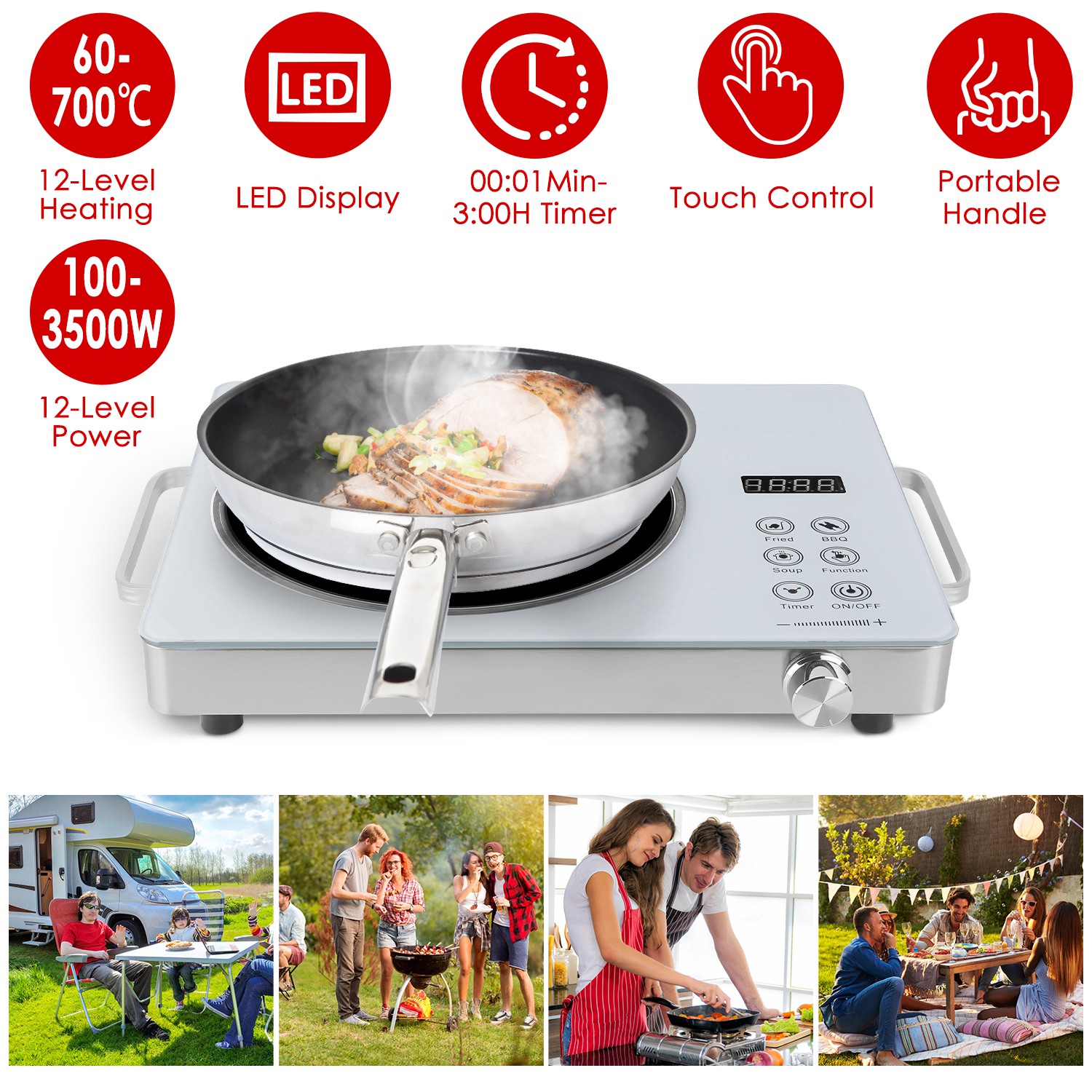 Home > 3500W Electric Single Ceramic Stove Electric Cooktop Hot Plate Infrared Countertop Burner with 12 Power & Temperature Levels 0-3H Timer Portable Handl
