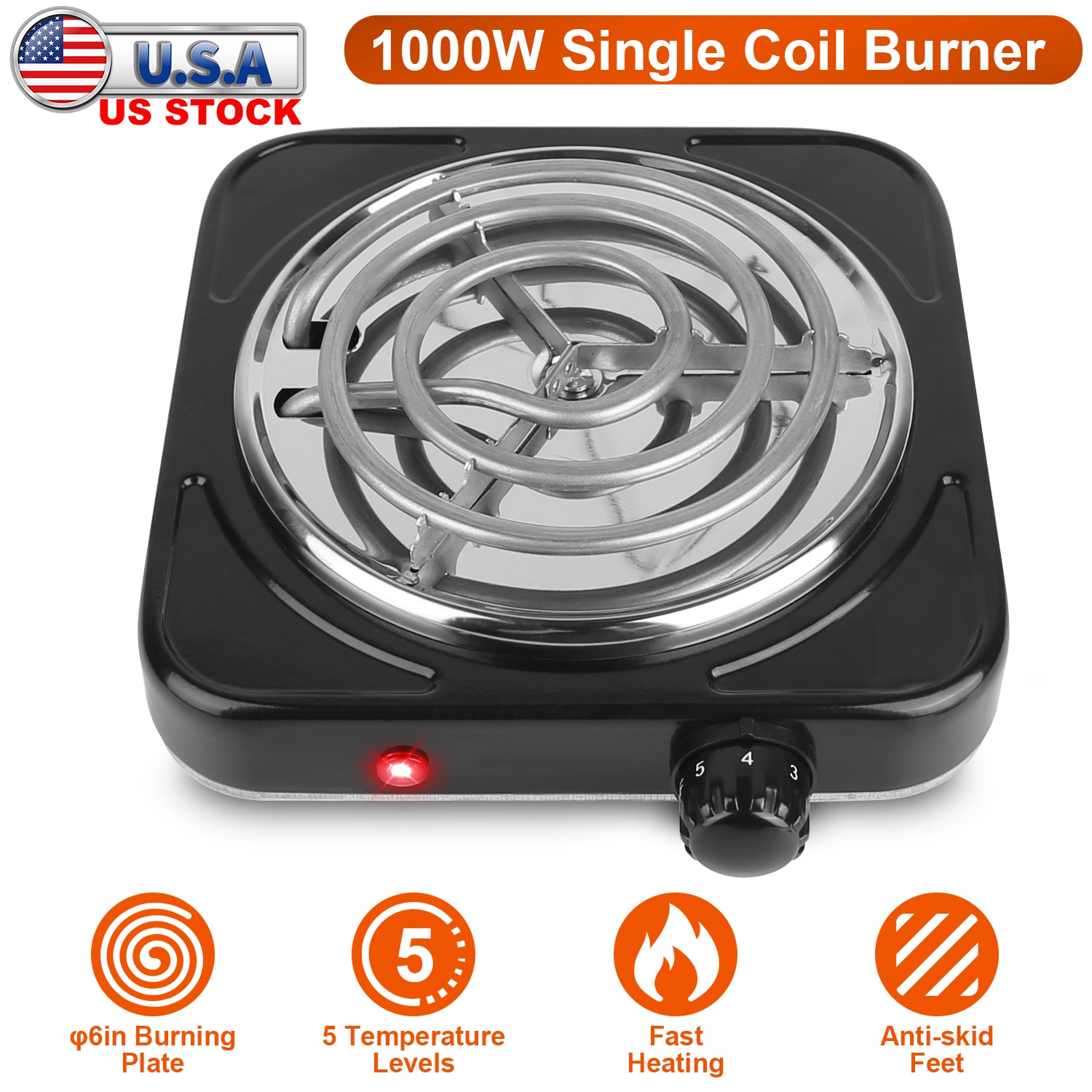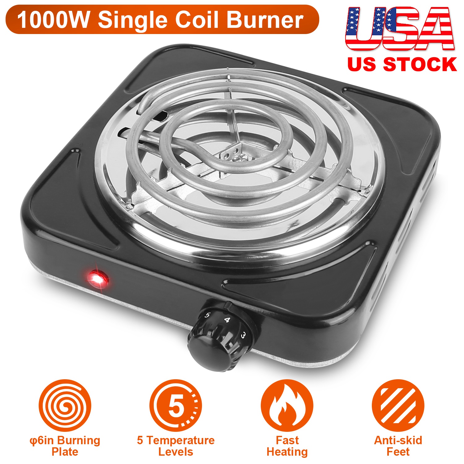 Home > 1000W Electric Single Burner Portable Coil Heating Hot Plate Stove Countertop RV Hotplate with Non Slip Rubber Feet 5 Temperature Adjustments