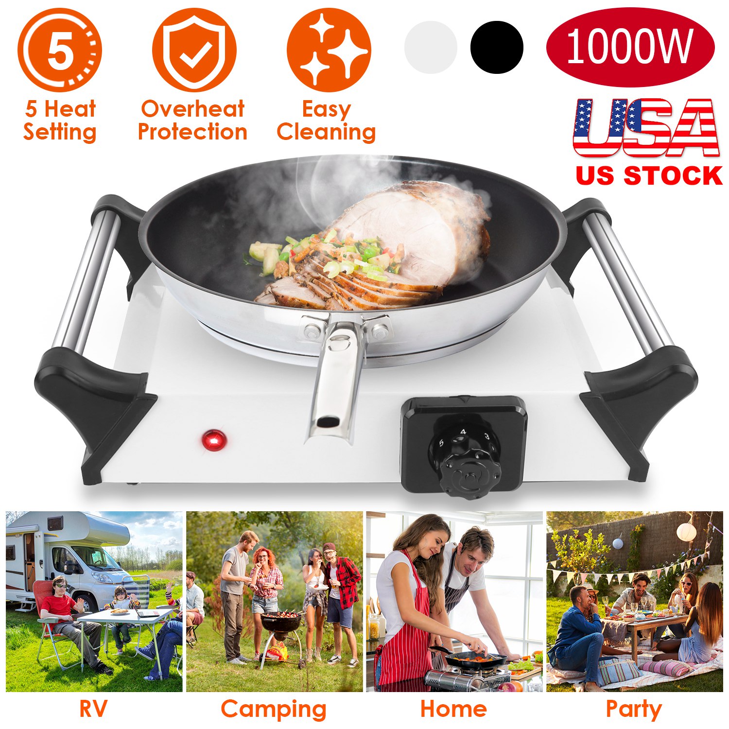 Home > 1000W Electric Single Burner Portable Heating Hot Plate Stove Countertop RV Hotplate with 5 Temperature Adjustments Portable Handles