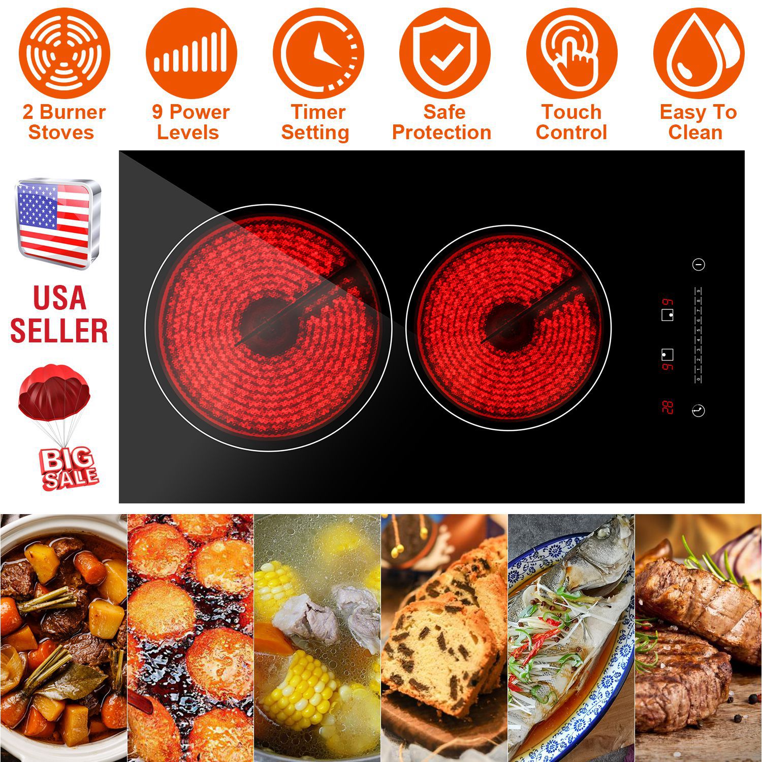 Dual Induction Burners Electric Cooktop 110V Total 1900W Electric Stove Built-in Electric Ceramic Stove with Timer Setting 9 Firepower Levels Over Hea