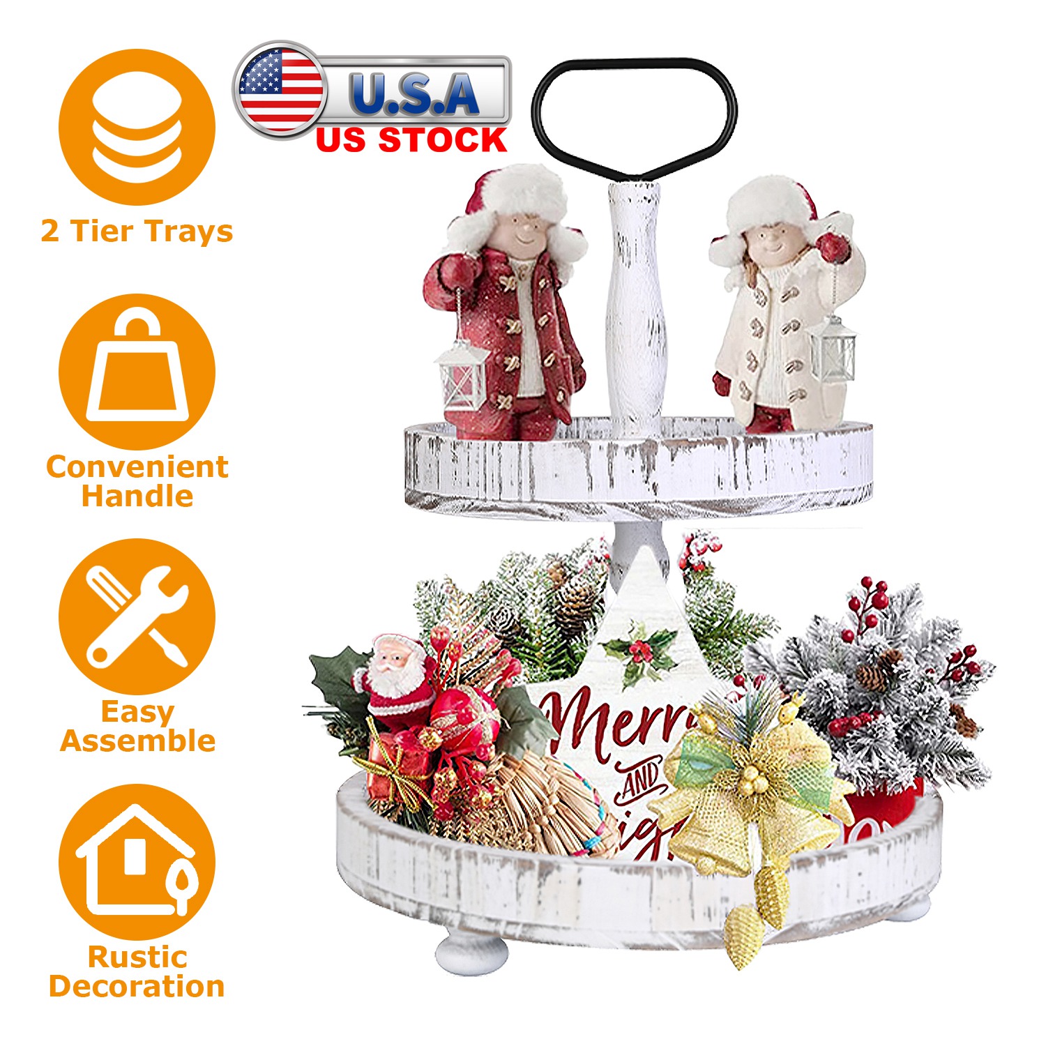 2 Tier Serving Tray Round Farmhouse Kitchen Table Tray Stand Food Fruits Cupcake Display Coffee Countertop Tray